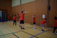 Sehr erfreulich ist in jedem Jahr, dass sich aus den eigenen Reihen immer wieder Spieler finden, die bereit sind, das Camp als Trainer zu unterstützen, auch wenn sie das zum größten Teil vorher noch nie gemacht haben. Dieses Jahr wurden die Anfänger betreut von Annalena Weber (TuS), Moritz Dirion (TSV), Axel Stange (TSV), Benedikt Endlich (TuS) und Justus Schenk (TSV). Mit den Fortgeschrittenen beschäftigten sich Joan Flick (VBC), Benian Özdüzenciler (VBC), Konstantin Hirsch (TSV) und Sebastian Czernitzki (VBC). Die Aktiven schließlich wurden gefördert von Joshua Grimm (TSV) und Malte Stohner (TSV), der kurzfristig für den verletzten Jannik Reber (VBC) eingesprungen ist.