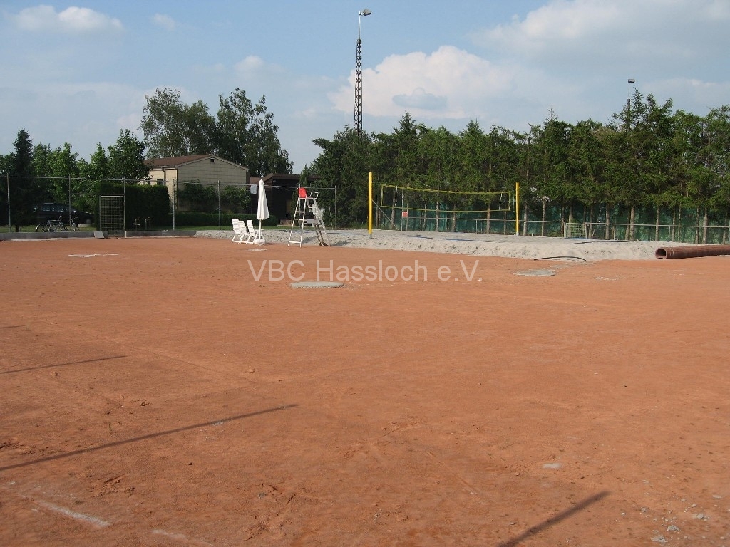 Die nächste Woche laufen die wesentlichen Vorarbeiten für die Beachplätze 2+3+4. Dazu wird der Sand für die Plätze 2+3+4 geliefert (500t), sowie der provisorische Rand um Platz 1 abgebaut und als Rand für die gesamte Anlage entlang dem Zaun einbetoniert. Im Anschluss daran wird eine weitere professionelle stationäre Netzanlage mit Pfosten aufgebaut. Mit dem Einsatz unsere transportablen Netzanlage sind damit in zwei Wochen 3 Beachfelder bespielbar sowie alle Vorbereitungen getroffen für ein 4tes Feld. Durch diese Arbeiten ist auch eine Verletzungsgefahr an der provisorischen Feldumrandung beseitigt.
